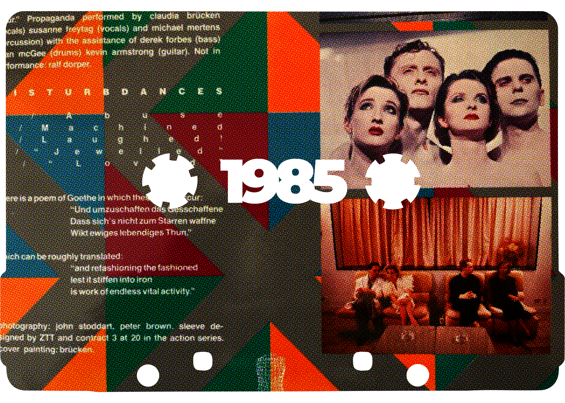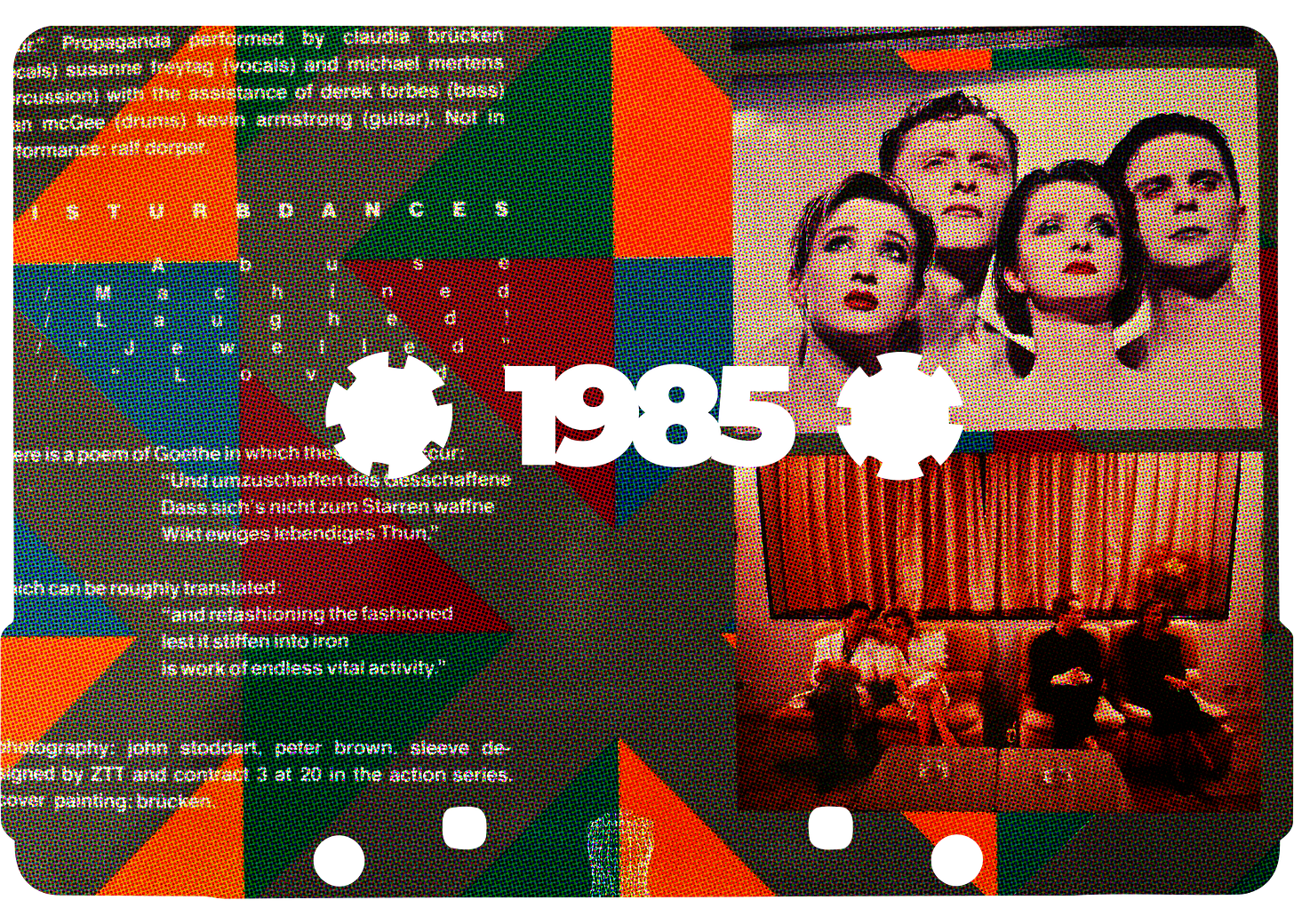 That Goethe quote above is not on the cover of Propaganda’s first LP, A Secret Wish. Instead, it is on the back of Wishful Thinking, an album of — wait for it — ‘disturbdances’: that is, remixes of tracks from A Secret Wish. In the sort of glorious bathetic mode that so typifies proper pretension, Goethe’s lines are deployed as a metaphor for pop remixes: