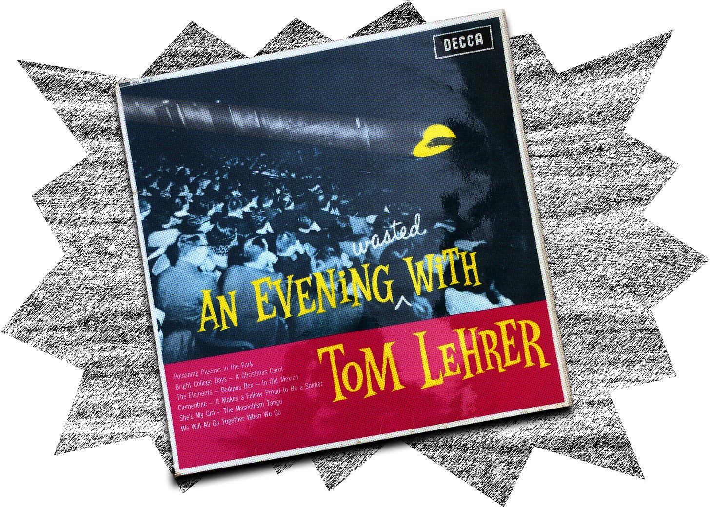 Recorded in early 1959 at Harvard, An Evening (Wasted) is a collection of comic songs by mathematician-pianist Tom Lehrer. It was his second album; he recorded his first, Songs by Tom Lehrer, in 1953 and flogged it around the Harvard campus for cash while his reputation built - as he said - ‘slowly, like herpes rather than Ebola’.