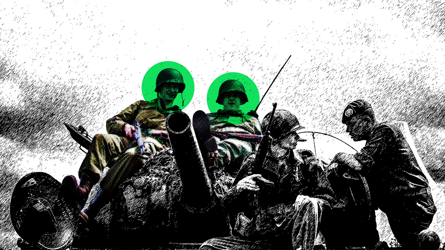 Neither Saving Private Ryan nor Band of Brothers are exacting pieces of brute realism, but that’s all to the good if you’re trying to tell a Wednesday night multiplex audience things they didn’t already know. A bit of sugar helps, and there’s quite a lot of sugar here, flattening out and romanticising. The Red Army is barely mentioned, and the racist segregation of US troops is only glancingly acknowledged. They don’t quite know how to portray heroism without tipping into worship: Hanks’s Captain Miller in Ryan and Dick Winters in Brothers (Damian Lewis) are models of morality, competence and judgement.1 Everyone in Brothers, whether a major character (Ron Livingstone’s Lewis Nixon) or minor (Tom Hardy’s John Janovec), is absolutely gorgeous.