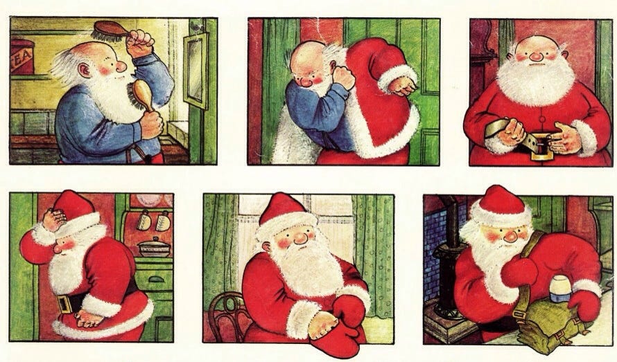 Every frame from this book and its sequel, “Father Christmas Goes On Holiday”, are etched into my memory. Thank you for distilling just how much they’re designed for children’s delight.