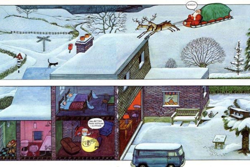 Father Christmas, inspired by Briggs’s father’s own experiences as a milkman, is a fully recognisable British working man of the period, begrudging and swearing his way through the night shift. He’s every grumbling grandfather, and every dyspeptic uncle round the Christmas dinner table.